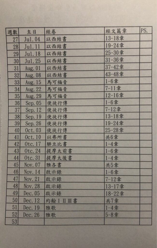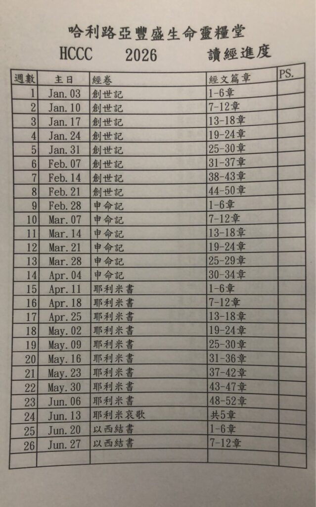 2026 讀經進度表 Bible Study Schedule